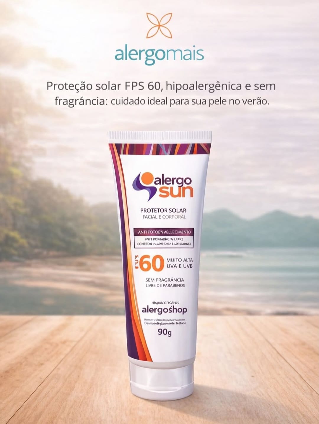 O Protetor Solar é enriquecido com Vitamina E e Alantoína, o protetor solar promove hidratação, nutrição, ação antioxidante e efeito calmante, ajudando a prevenir manchas, queimaduras solares e o envelhecimento precoce da pele. Com toque sedoso, fácil espalhabilidade e sensação confortável, o Alergosun FPS 60 garante proteção confiável, conforto diário e cuidado completo para toda a família.